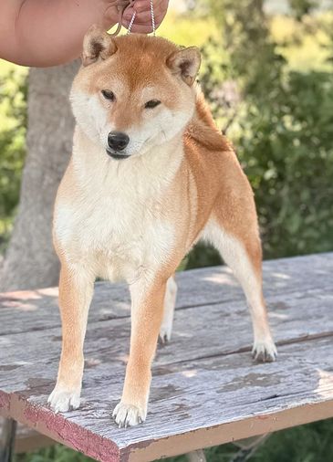 Dam Asa Hanna Prairie's Red Dawn who has many Major and Pointed Offsprings. Katie is a very sweet and playful Shiba. She's always looking to love on someone, whether it be her fellow Shibas, or her two-legged friends. She has very correct Shiba confirmation, and sports a beautiful, thick red coat. She has dark, intelligent, almond shaped eyes, and perfect, thick little Shiba ears. Katie earned her Championship Feburary 19, 2018. She earned her Grand Championship July 28, 2018. Katie has Champion offsprings. 1) Grand Champion Prairie's Earlydawn Kibo Of Serenity, 2 ) Champion Haiku's Prairie Spice Girl, 3 ) Champion Prairie Walker's Perfect Storm, & 4 ) Champion Prairie Walker's Eye Of The Storm. Katie stands at 15 1/2” and weighs 20 lbs.